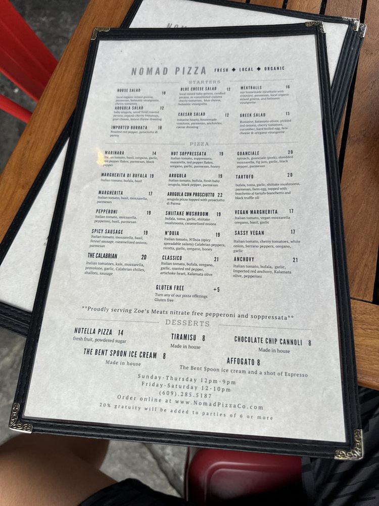 Located in Princeton, NJ, Nomad Pizza offers a range of delicious wood-fired pizzas with fresh ingredients. The menu includes classic options like Margherita and Pepperoni Pizza, as well as unique creations like the Trenton Tomato Pie and Spicy Sausage Pizza. In addition to pizza, Nomad Pizza also offers a variety of salads, including the popular Arugula Salad with wood fire-roasted pecans and cherry tomatoes. For dessert, don't miss out on the Nutella Pizza with bananas and powdered sugar.