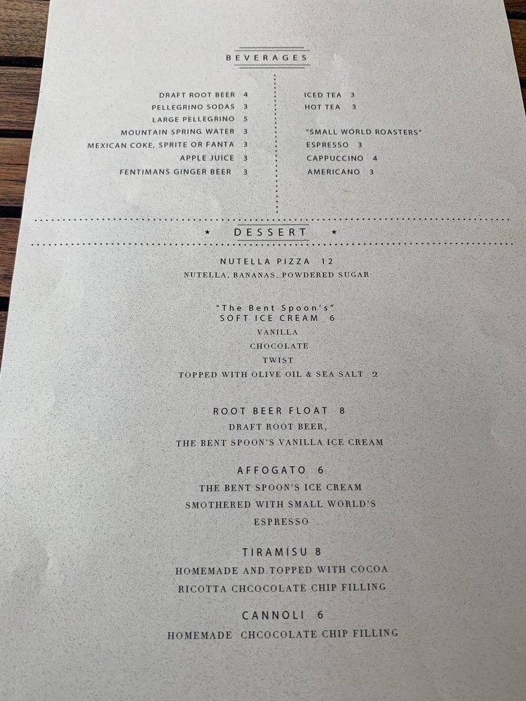 Spinach, guanciale (pork), shredded mozzarella, fig jam, garlic, black pepper and Parmesan.